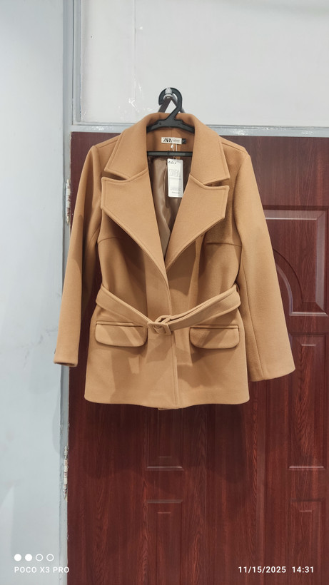 پالتو زنانه zara یقه آمریکایی کوتاه جنس فتر